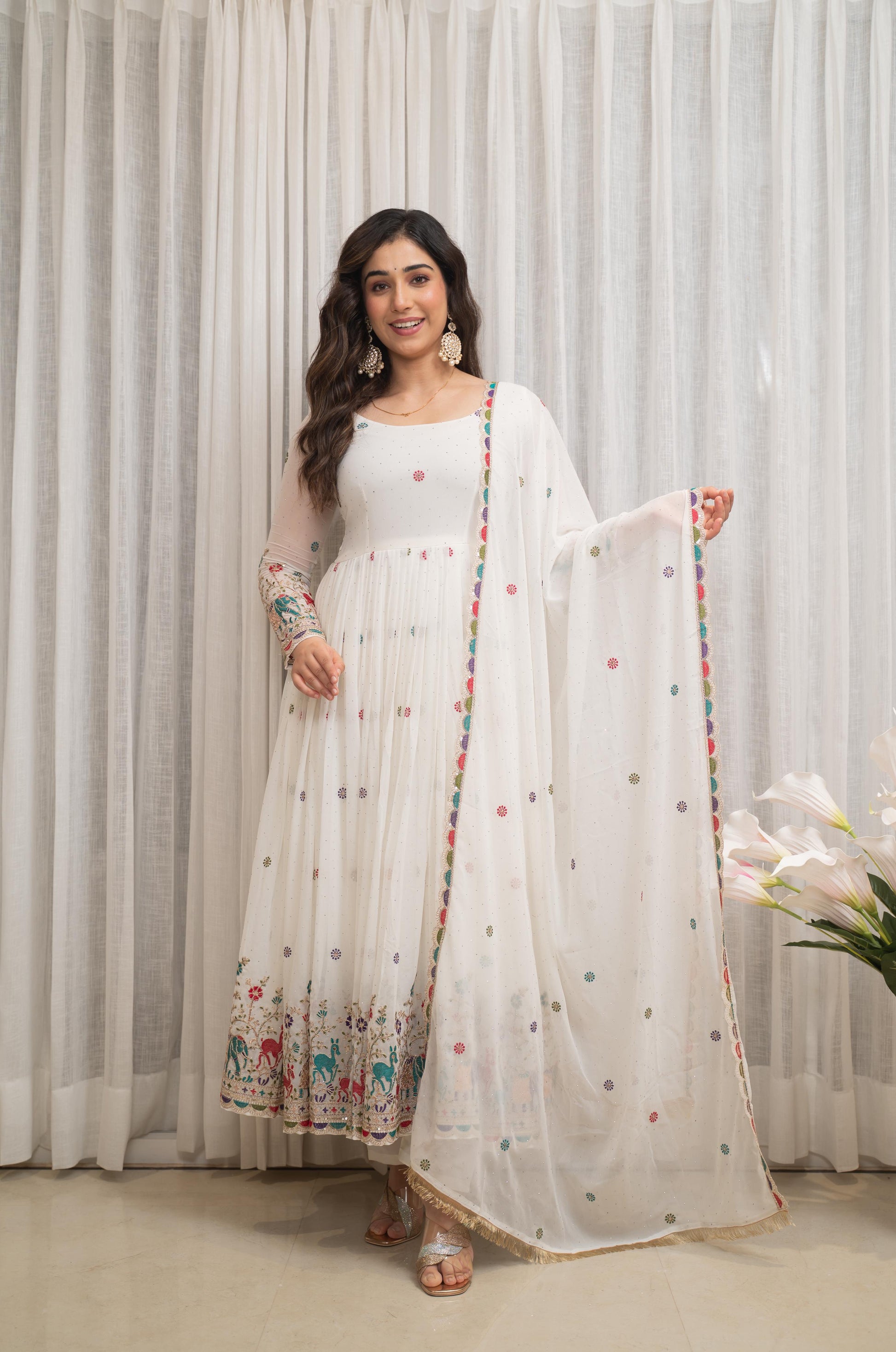 Gown Fabric : fox georgette With Heavy Embroidery multi work and 3-5mm Sequence Work With Full-Sleeve With (Attached Ped)